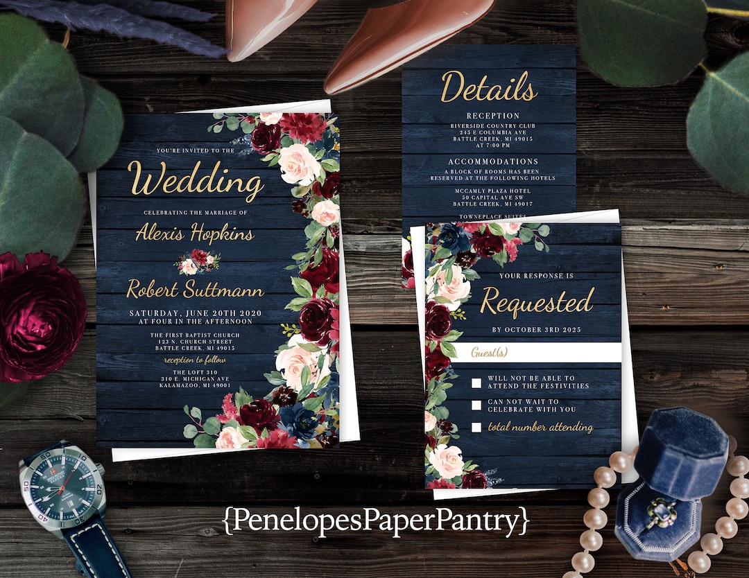 Source : www.bendbulletin.comRustic,navy Floral,fall Wedding Invitation,fall Wedding Invite