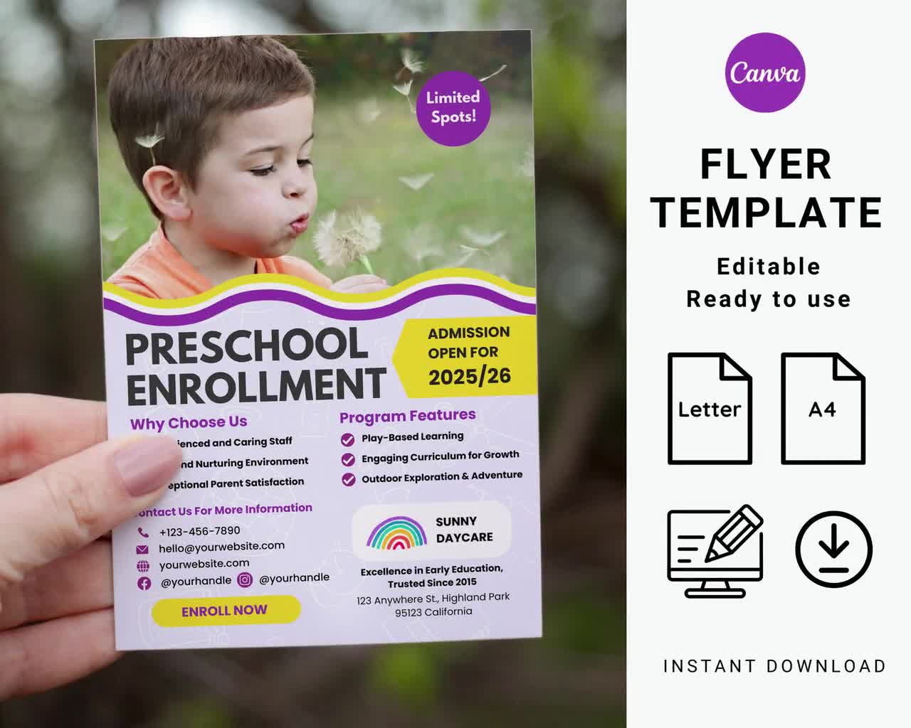 Source : www.etsy.comPrintable Flyer Template for Preschool Daycare Enrollment Leaflet